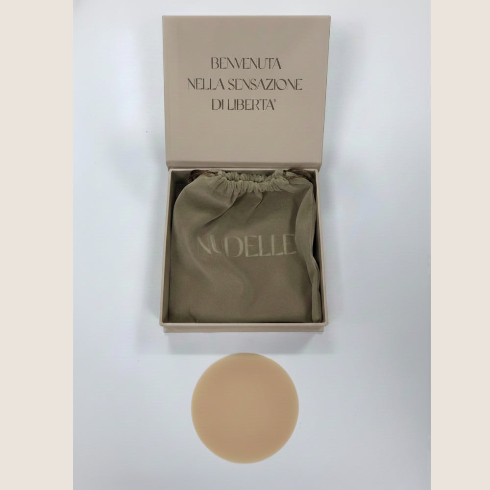 Aderiscono forte ma non “strappano” la pelle, hanno un bordo ultra sottile che non si vede e una superficie ultra-matte che non riflette la luce. La Zona Comfort Capezzolo evita l’adesivo diretto sul capezzolo, così riduci al minimo fastidi e irritazioni.